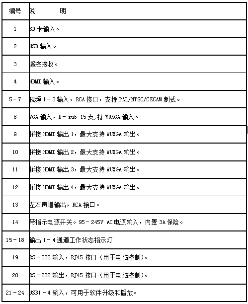 1、單臺支持4拼接HDMI接口輸出,支持20臺級聯(lián)使用;