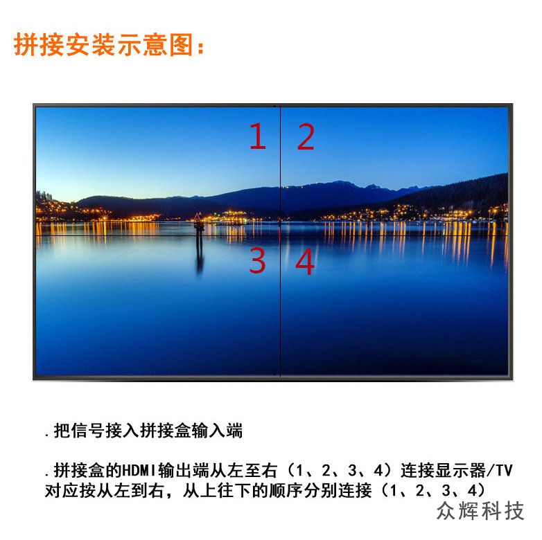 4個(gè)HDMI高清接口USB循環(huán)播放 眾輝4電視拼接盒ZH-240