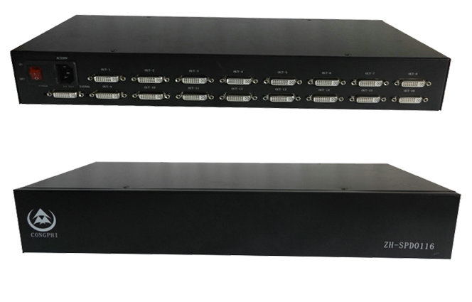 5、 ZH-SPD0116 工業(yè)型分配器輸入可支持標(biāo)準(zhǔn)DVI 和帶有HDCP 信號,從